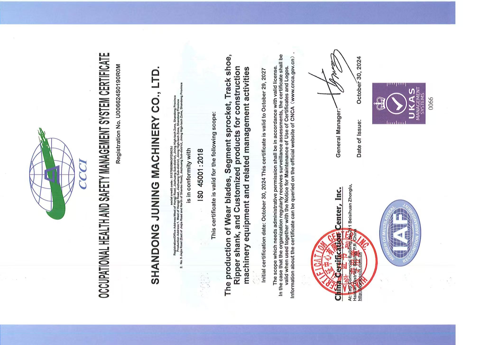 So far, the has passed all three certifications: ISO9001 (Quality Management System), ISO14001 (Environmental Management System), and ISO4501 (Occupational Health and Safety Management System).